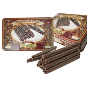 Barquillos al cacao. Lata de 250 gr.