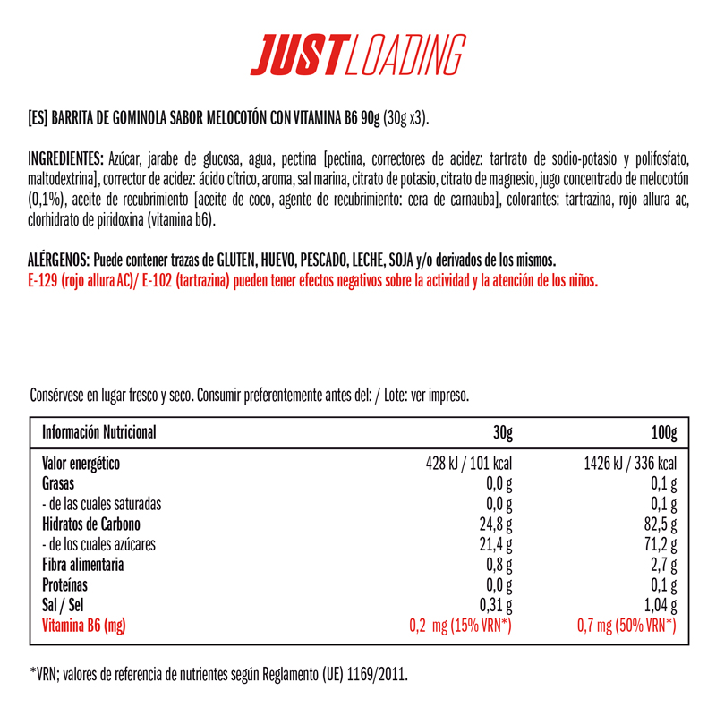 La barrita de gominola Just Loading con electrólitos son una fuente de energía rápida que incorpora a los hidratos de carbono electrolitos clave como el potasio y magnesio con el objetivo de ayudarte a combatir la deshidratación y a retrasar la sensación de fatiga durante la realización de ejercicio físico. Ideal para el rendimiento en ejercicios de media y larga duración, deportes de raqueta y de equipo.