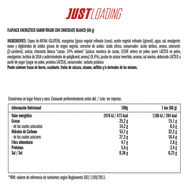 • Antes del ejercicio: para recargar tu energía en competiciones o pruebas deportivas, te recomendamos que tomes un Flapjack Just Loading unas horas antes.
