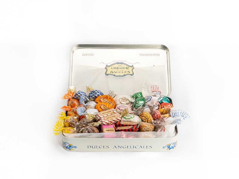 Elegantes envases de colección, diseñados en hojalata, donde podrán soborear los dulces más exquisitos elaborados por nuestros maestros artesanos. Surtidos de una Gran variedad de PEQUEÑAS DELICIAS de Almendra, Piñones, Cremosos Chocolates (blanco, negro y con leche), Pastelitos de Gloria y Yema, Hojaldres de Fruta confitada y Chocolate, Polvorones de alta tradición, Mantecaditos de Canela, Rosquillas, Alfajores, Turrones, Mazapanes, Bombones, Cerezas y Naranjas cubiertas de Chocolate Negro y un sinfín de sobores y aromas tradicionales.