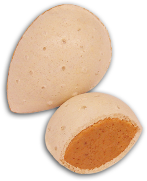 INGREDIENTES: Chocolate blanco 88% (azúcar, manteca de cacao, LECHE entera en polvo 25%, LACTOSUERO en polvo, lecitina de SOJA y vainillina), ALMENDRA 10%, Aceite de girasol y Cacao en polvo1 %. Puede contener trazas de: GLUTEN, HUEVO, CACAHUETE, otros FRUTOS DE CASCARA, SESAMO y SULFITOS. Valores nutricionales por 100g: Valor energético (2387kJ/561kcal), Grasas (totales 38, saturadas 18), Carbohidratos (totales 50, azúcares 26), Proteínas 8, Sal 0,3.