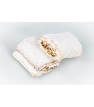 Harina de trigo, manteca de cerdo (grasa de cerdo ibérico y antioxidante E320), margarina [grasa vegetal refinada (palma) aceite vegetal refinado (girasol), agua, emulgente (mono y diglicéridos de ácidos grasos de origen vegetal (E 471)), sal, aroma, acidulante (ácido cítrico (E 330)), colorante (B-caroteno (E160a)] Relleno de crema pastelera 25% [azúcar, jarabe de glucosa y fructosa, agua, almidón modificado (E1442), estabilizantes (E460, E466), sal, conservador (E202), acidulante (E330), colorantes (E171, E160a) y aromas], agua, vino, azúcar, sal, esencia de vainilla, esencia de naranja.